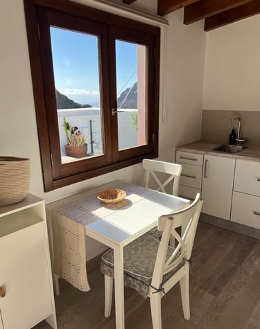 Unser Ferienhaus, umgeben von atemberaubender Berglandschaft, Vogelgezwitscher und stiller Natur, ist der perfekte Ort zum abzuschalten. Der Blick aufs Meer versetzt dich sofort in Urlaubsstimmung – besonders zu den Morgenstunden und beim Sonnenuntergang. Wer gerne wandert oder einfach die natürliche, ursprüngliche Landschaft liebt, findet hier ein kleines Paradies.